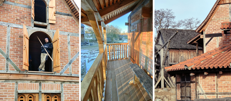 Wie immer mit der Unterstützung von Zimmermannsmeister Malte! Wie der Zufall es wollte, kam Grobi an einen hervorragenden Artikel der University of Cambridge heran, mit hervorragenden Detailaufnahmen der Beschläge, die Fabi bei der Umsetzung der Schmiedearbeiten sehr behilflich waren. Ebenso wie unsere Küchenpforte (nach der romanischen Kirchentür von Beiersdorf bei Grimma in Sachsen, die eher slawisch geprägt ist), zeigt die Apothekentür, welchen verschiedenen kulturellen Einflüssen die Menschen im hochmittelalterlichen Europa unterlagen. Das Aufeinandertreffen verschiedener Kulturen und deren Verschmelzung, ist historische Normalität. Das ist nix Schlimmes. In diesem Punkt könnten wir aus der Geschichte lernen.