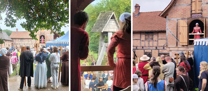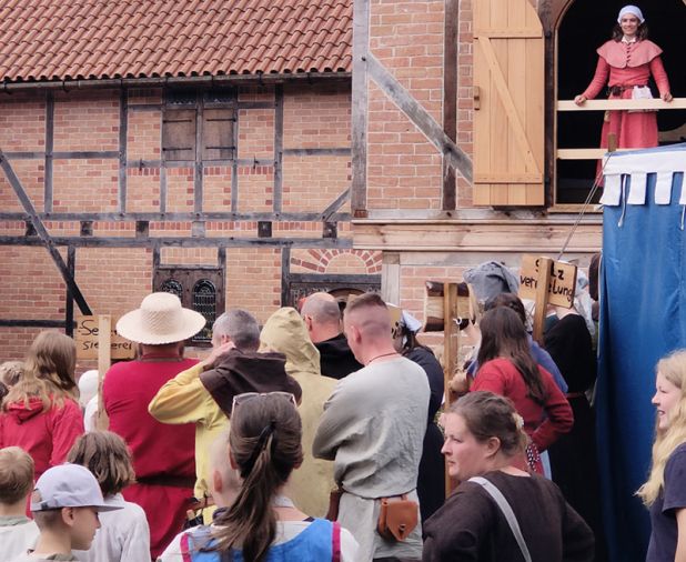 Es gab eine Bank, eine Bürgermeisterin und eine geliebte und auch gefürchtete Stadtwache. Es gab Intrigen und Aufstände, aber auch Urkunden und Belobigungen für herausragende Handelsprodukte auf dem Markt. Es wurde gefeilscht um so manche Witte. Es war herrlich. Die Kinder sind eine Woche eingetaucht in diese abenteuerliche Welt und die Erwachsenen mit ihnen. Der Geschichtserlebnisraum bietet mit all seinen historischen Häusern, Tieren und Gärten eine einmalige Kulisse für dieses Ferienspiel.